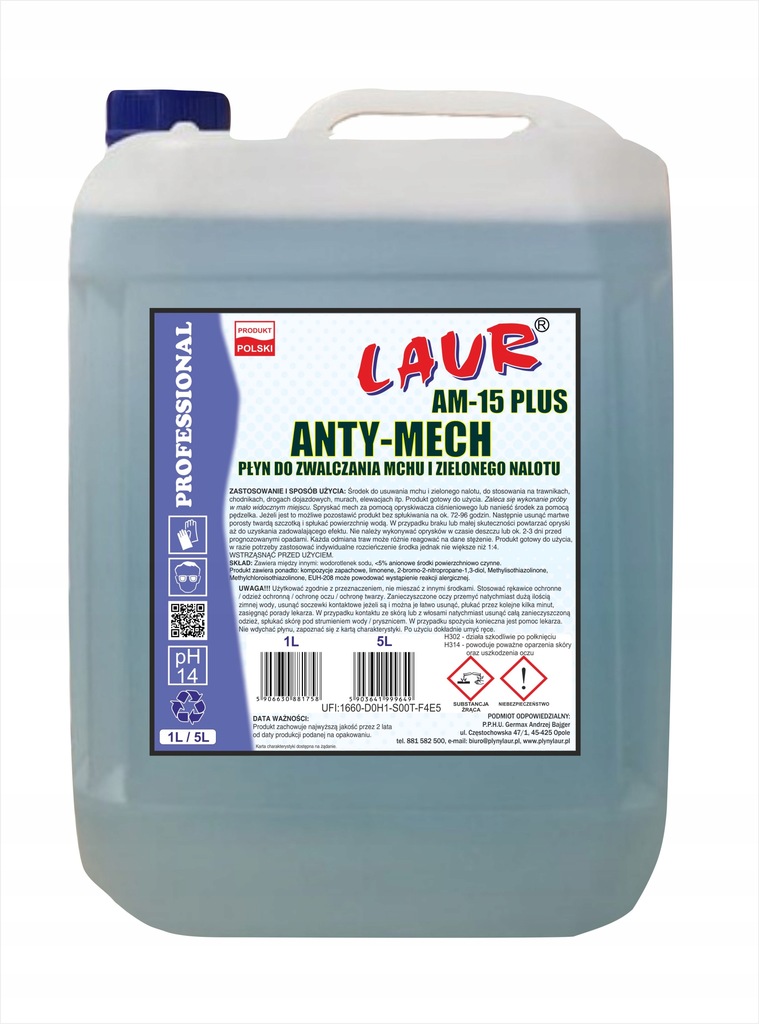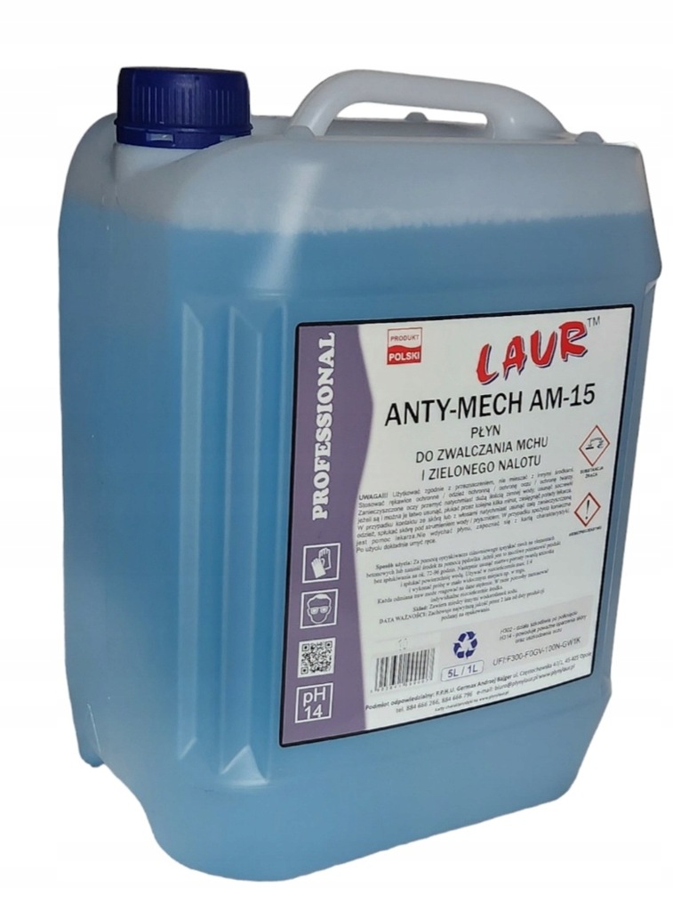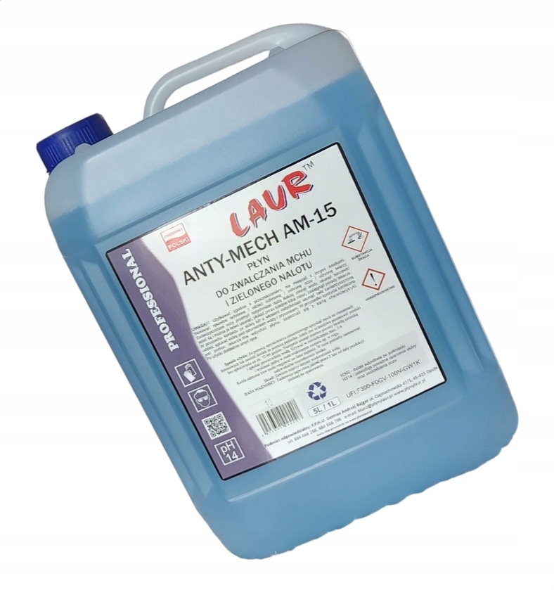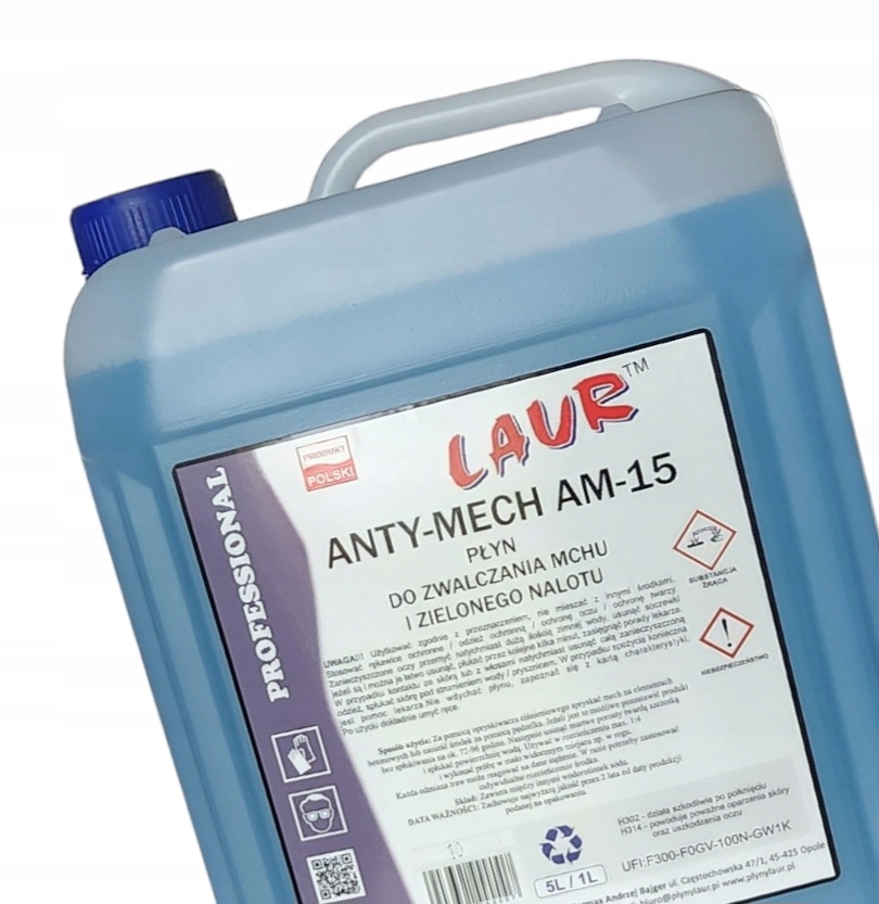 Po obeschnięciu mchu, ale nie wcześniej niż po 3-4 dniach całość zmyć (najlepiej myjką ciśnieniową). Dodatek myjący zawarty w AM-15 Premium ułatwi zmycie pozostałości po mchu. W celu wzmocnienia efektu mycia można zastosować dodatkowo płyn do elewacji LAUR UP-5004 Elewacje - dostępny w naszym sklepie na Allegro.