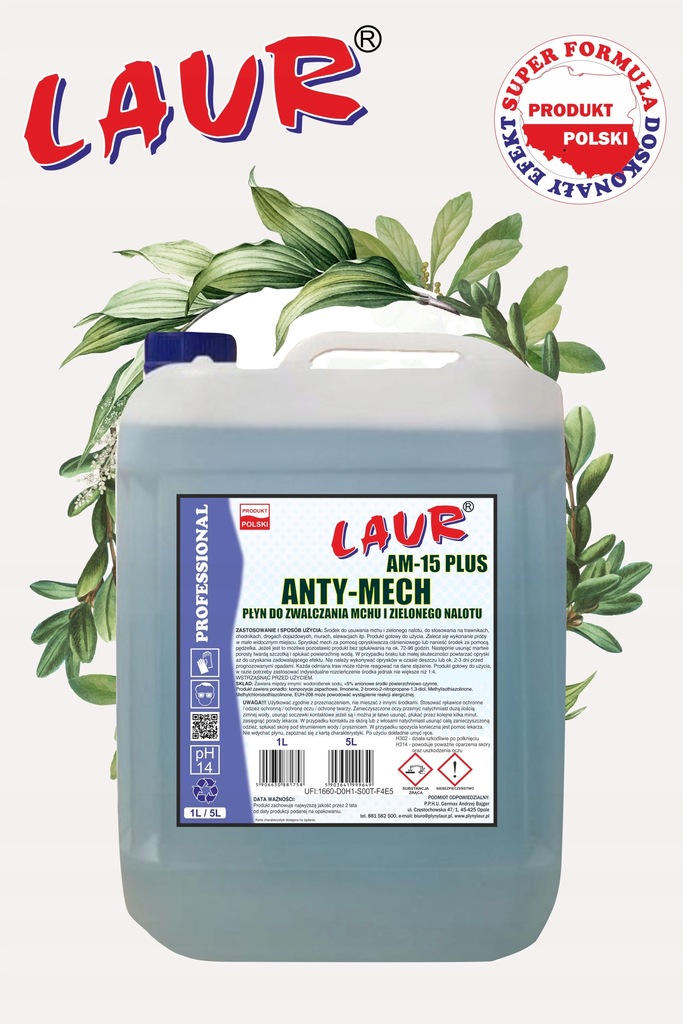 AM-15 Premium Plus posiada dodatek myjący, który ułatwi późniejsze zmycie pozostałości mchu.