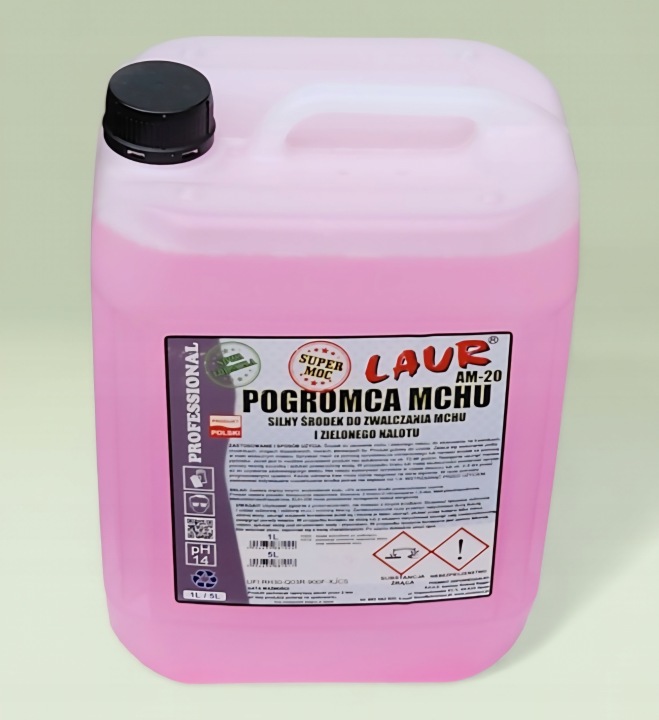 Profesjonalny płyn do usuwania i zapobiegania porostowi mchu na elementach betonowych takich jak, np. kostka brukowa, posadzki betonowe murki, dachówki oraz elementy ceramiczne, drewniane, mineralne, bitumiczne i inne materiały budowlane.