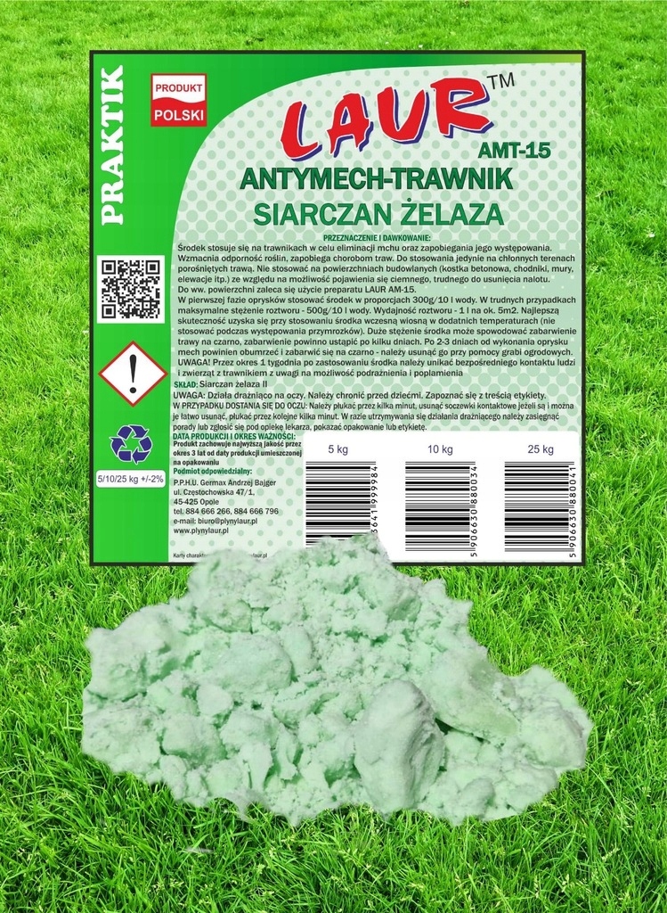 AMT-15 to siarczan żelaza, doskonały preparat, który ma podwójne zastosowanie: może być wykorzystany jako nawóz i jest zarazem skutecznym środkiem do w zwalczaniu mchu na trawnikach.