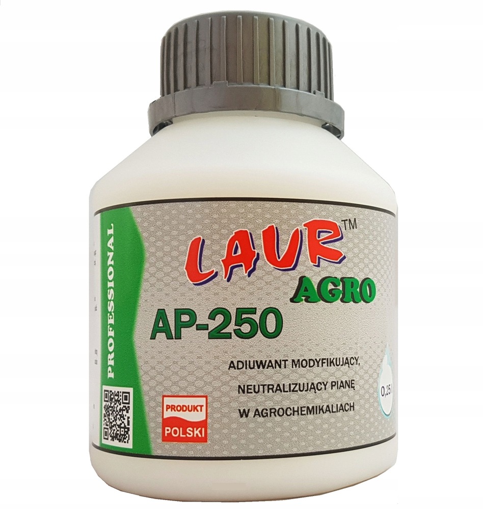 Profesjonalny neutralizator piany AGRO LAUR AP-250 antypieniacz. Skoncentrowany adiuwant modyfikujący, neutralizator piany w roztworach cieczy roboczej agrochemikaliów. Dedykowany do przeciwdziałania i skutecznego niwelowania powstającej piany w opryskiwaczach i zbiornikach roboczych.