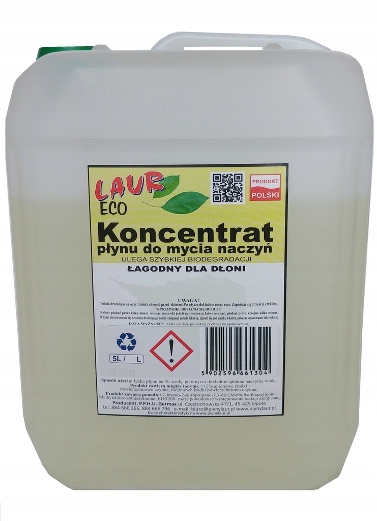 Płyn LAUR do mycia naczyń wykonany z najwyższej jakości komponentów z dodatkiem gliceryny kosmetycznej roślinnej o czystości ponad 99% chroniącej dłonie w trakcie zmywania naczyń.