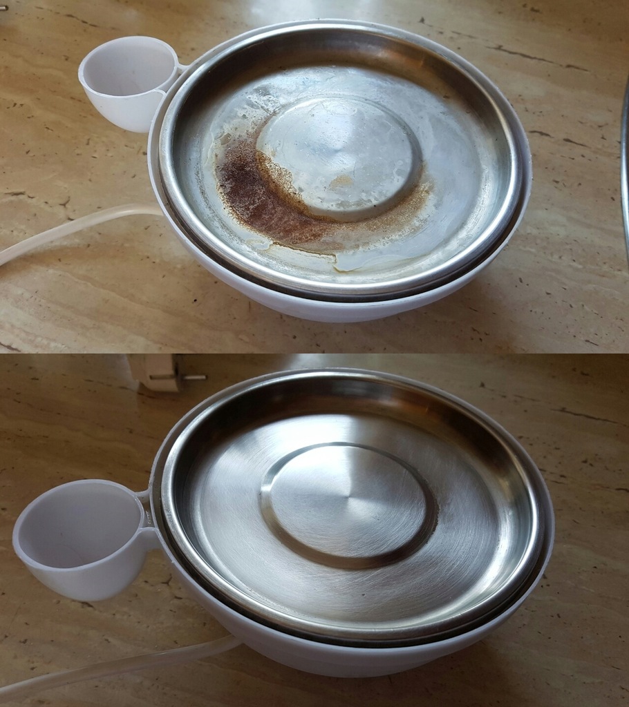 W przypadku mocno przypalonych powierzchni, np. garnki/patelnie istnieje konieczność powtarzania procesu czyszczenia, aż do uzyskania zadowalających efektów.