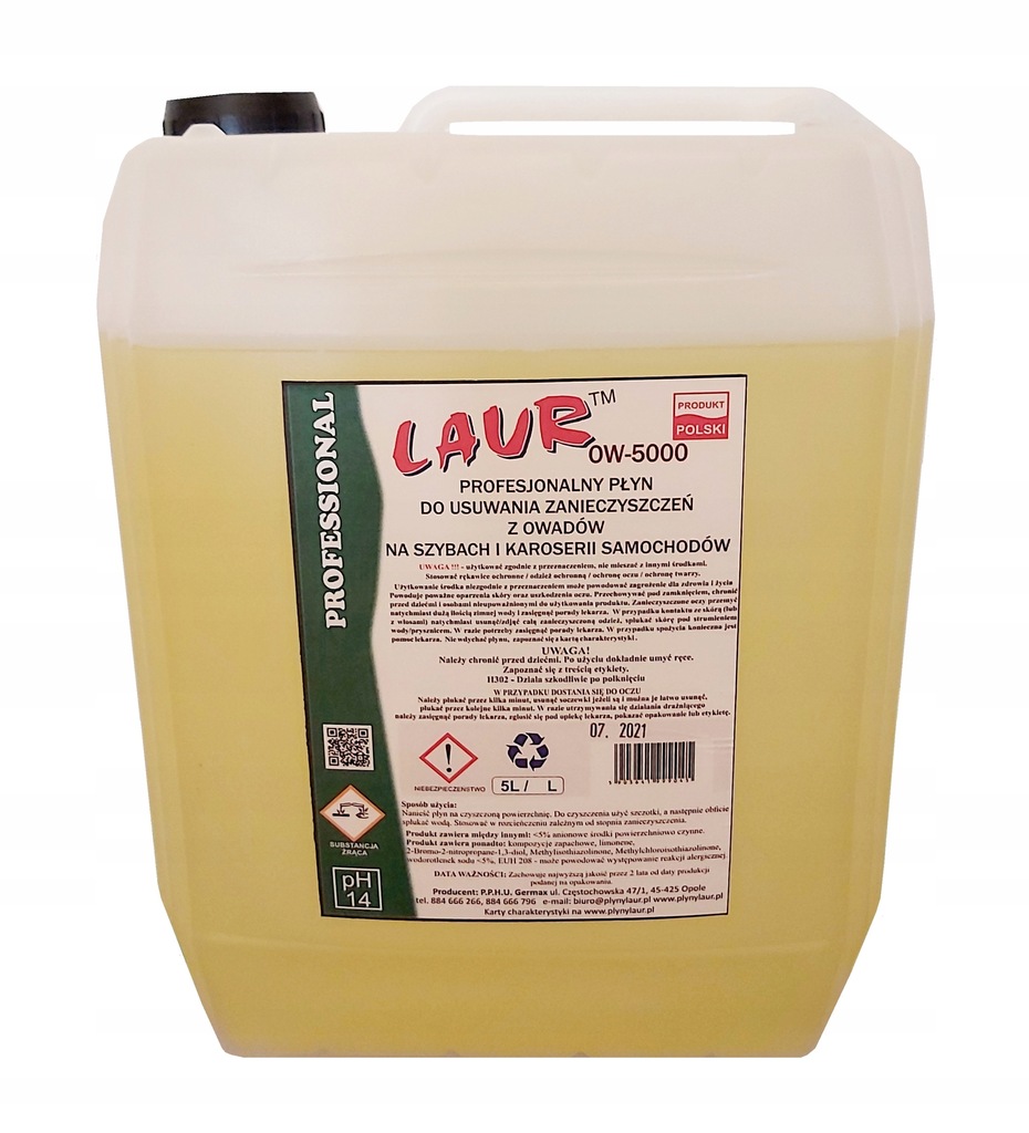 Środek w płynie do szybkiego usuwania owadów z szyb i karoserii aut i innych pojazdów LAUR OW-5000 poj. 5L